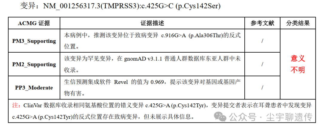 遗传病NGS检测主要涉及三个重要环节:湿实验、干实验和数据解读。截至今年,遗传病NGS室间质评考核的其实是湿实验和干实验,数据解读没算成绩。因此,我觉得没啥好聊的,考核的变异中规中矩,属于一眼就能揪出真凶的那种,被漏的可能性其实是很小的。明年开始会有变异致病性的室间质评,变异致病性评估是数据解读的重要一环,官方的结果也不一定完全正确,将会很精彩,这从今年的结果就能看出大概。目前的室间质评虽然不考核致病性评估,但是也统计了致病性评估,我把我们自己的评估结果、卫健委的预期结果、全国的结果贴出来供大家参考和讨论。 生信分析的室间质评 1.官方预期结果(致病性): 2. 全国各实验室提交结果(致病性): P和LP存在差异可以接受,P/LP和VUS存在差异其实是不太能接受的。将变异NM_001256317.3(TMPRSS3):c.425G>C(p.Cys142Ser)判断为LP的实验室,可能是将PP3升级到PP3_Strong使用了。 3. 我们自己的结果(致病性): 第一个变异,预期结果是LP,我们给了P,差异在于PS4的使用强度,盲猜是官方没有使用室间质评的病例。 第二个变异的证据足够充足,没啥好说的。