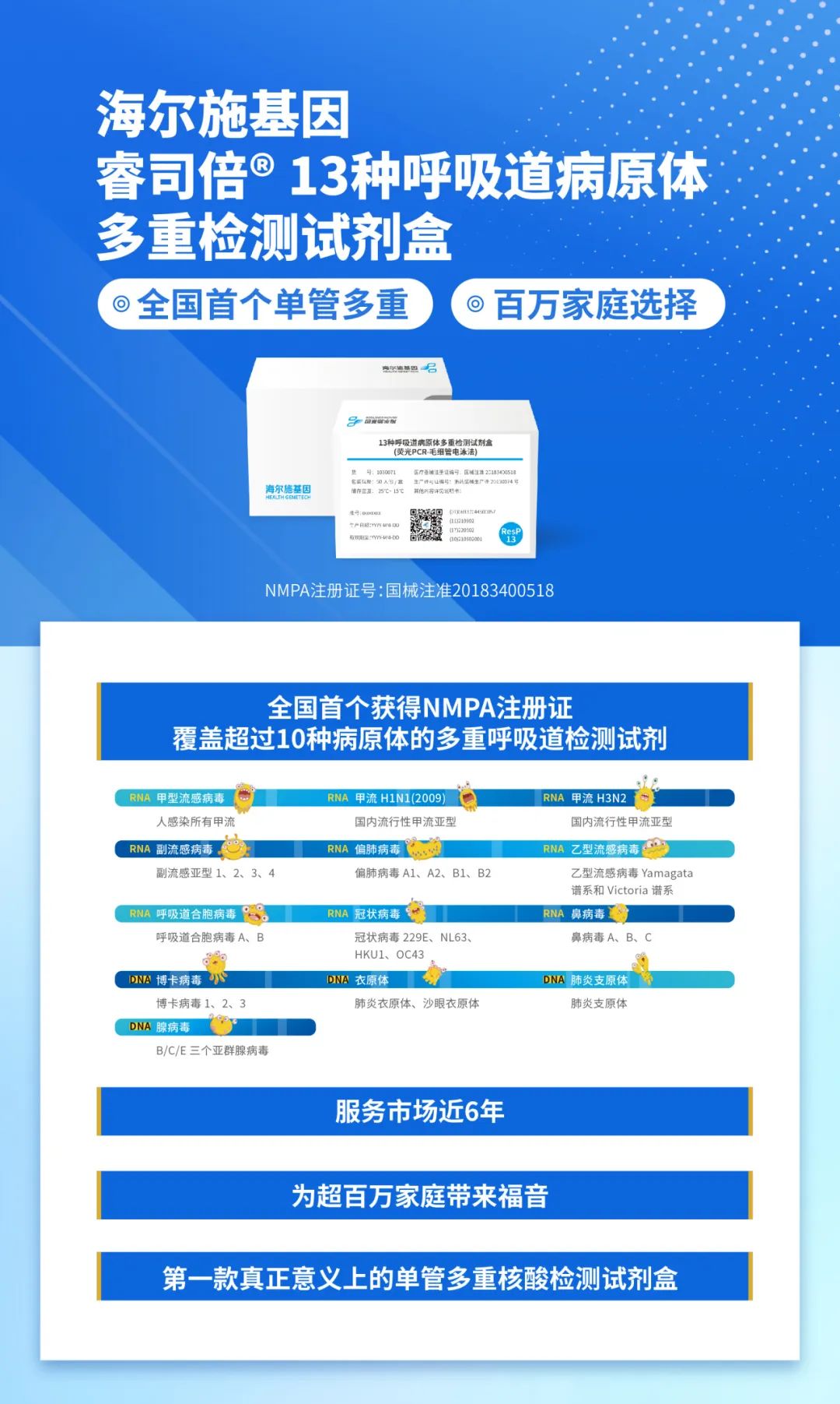 小雪一过,北方气温骤降,多地医院发热门诊,儿科,呼吸科又迎来了新一轮就诊高峰。 来源:人民日报健康客户端 11月28日,中国疾病预防控制中心发布《全国急性呼吸道传染病哨点监测情况(2024年第47周)(11月18日—11月24日)》。 • 目前急性呼吸道传染病总体仍处于相对低流行水平,但呈现上升趋势 • 其中鼻病毒感染在流行期波动 • 流感病毒和腺病毒检测阳性率连续两周小幅增加 • 新型冠状病毒、呼吸道合胞病毒等其他呼吸道病原体处于较低流行水平 • 北方部分省份的肺炎支原体检测阳性率连续两周下降 报告显示 (1)第47周呼吸道样本病原体核酸检测阳性率(%) (2)南北方地域差异 (3)不同年龄段人群差异 (4)呼吸道样本病原体核酸检测阳性率每周变化趋势(门诊) (5)呼吸道样本病原体核酸检测阳性率每周变化趋势(病房) 当出现呼吸道症候群时,如何准确判断是何种呼吸道病原体造成的感染就成为了及时对症治疗的关键。多个呼吸道感染共识中多重核酸检测以高灵敏度高特异性等优势,成为了临床判断病毒与非典型病原体感染的“金标准”。 目前,市面上的核酸检测产品选择良多,海尔施基因的睿司倍是市面上首个已经经过六年市场验证的超多重核酸检测,涵盖中国疾病预防控制中心检测的全部全国急性呼吸道靶点;可以将13种病原体进行早期鉴别诊断,提高检测效率,以便及早采取治疗诊断,避免盲目或不恰当使用抗菌药物,尤其是联合使用广谱抗菌药物。还可以对混合感染进行尽早识别,提前做到重症预警。 欢迎扫描二维码 我们将竭诚为您提供更多信息 宁波海尔施基因科技股份有限公司(HGT),是一家专注于医学检验技术及相关产品的研发、生产、销售与服务的高新技术企业。 业务涵盖临床检验、法庭科学两大领域,以“让社会更安全,让生活更健康”作为企业使命,致力于为各级医疗机构、第三方检验,疾控中心等提供分子诊断、免疫诊断、生化诊断等全面的医学检验应用解决方案,及为公安系统、鉴定机构等公共安全行业提供DNA检测产品、质谱分析产品等完整技术解决方案。 联系电话:0574-27978799 官方网站:contact@hgt.cn |