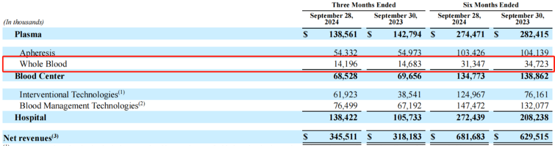 一方面,全血(Whole Blood)业务的营收明显下降,这影响了整个血液中心业务板块的业绩表现。