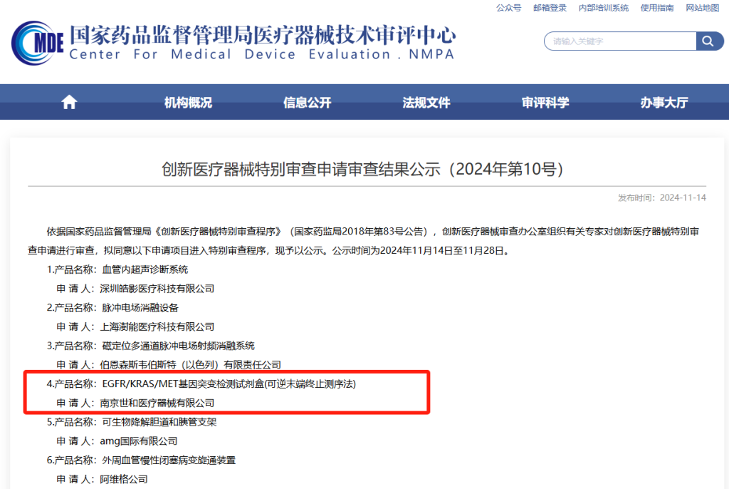 据悉,该试剂盒是世和基因第三款进入创新医疗器械特别审查程序的产品。
