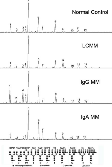 [5] Chen J, et al. Serum N-Glycans: A New Diagnostic Biomarker for Light Chain Multiple Myeloma. PLoS One. 2015 Jun 15;10(6):e0127022.