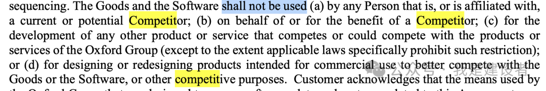 虽然ONT在美国撤回了单方面的传票申请,但还是在英国提起了对华大几家关联公司对诉讼。 ONT指控华大几家公司“违反合同、滥用机密信息和侵犯商业机密”,“非法使用”其技术开发竞争产品CycloneSeq测序仪以及其相关的流动槽和耗材。 ONT声称,它只是在“各种协议规定的限制和约束下”授予华大使用其技术的权利,其中包括限制在竞争产品的开发中使用ONT的技术;称华大及其附属公司“误导”了它,并“多次向其明确保证”,称他们“无意生产竞争性的纳米孔测序技术”。 在提起诉讼时,ONT请求法院颁发禁令,禁止华大及其附属公司滥用机密信息和侵犯商业秘密,禁止其销售、许可、使用或允许使用 CycloneSeq 或任何其他体现实质上相同测序技术的测序仪。 从这些报道来看,诉讼本身更多针对的是用户条款协议中包含的保密及非竞争等方面的约定,似乎并没有提及任何可能的专利纠纷。 针对双方一致同意并已经签订生效的协议条款和可能的违规发起诉讼,在正常的商业秩序中并不罕见。自然地,我们也不需要就此去推演任何可能的结局。 这再次敲响了警钟,在签订任何用户协议或者销售合同的时候,一定一定要仔细阅读相应的条款内容,了解清楚具体的约束条件和相应的限制。 ...流动池将预装纳米孔、膜(用于固定纳米孔)和电化学成分,这些成分位于经过修改的芯片表面之上。这些组件,无论是单独还是集体,都不允许被修改、衍生、替换或移除。测序试剂盒将包括其他组件:用于实现样品制备方法的酶和接头、通过与膜的相互作用实现分析物与纳米孔结合的分子“tether”、允许分析物通过纳米孔进行受控运输的酶、用于改善离子电导率的缓冲溶液、用于在样品之间清洗流动池的溶液以及 Oxford 不时提供的其他组件。设备需要使用能够控制设备和/或数据的软件。客户不得分析、修改或逆向工程这些组件,但可以开发和使用替代版本(“纳米孔化学品”)... ...不得 (a) 由任何当前或潜在竞争对手或其关联方使用;(b) 代表或为竞争对手的利益使用;(c) 用于开发与 Oxford Group 的产品或服务竞争或可能竞争的任何其他产品或服务(除非适用法律明确禁止此类限制);或者 (d) 为了设计或重新设计用于商业用途的产品,以便更好地与货物或软件竞争,或用于其他竞争目的... 以上只代表个人观点,不站任何立场。 |