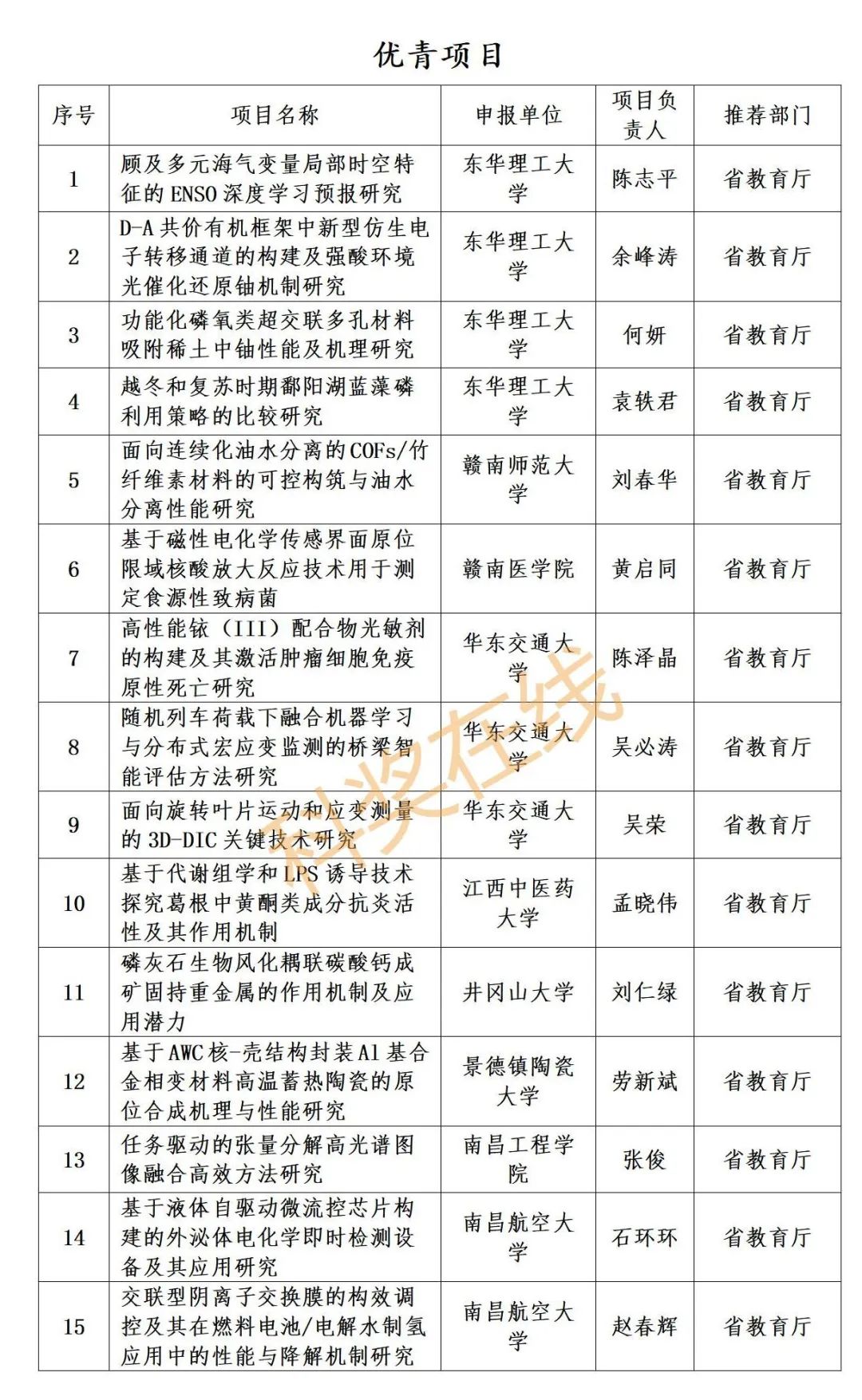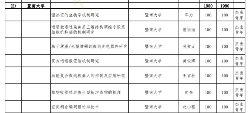 国家杰青优青名单 2024年度国家杰青、优青、杰青延续名单2025年浙江省自然科学基金拟资助项目 (杰青及延续项目142项,优青项目50项) 宁夏回族自治区 (杰青5项) 广西壮族自治区 (杰青20项) 黑龙江省 (杰青30项,优青190项) 山西省 (杰青10项,优青11项) 广东省 (杰青100项) 辽宁省 (杰青30项,优青50项) 安徽省 (杰青49项、杰青延续资助13项、优青50项) 江苏省 (杰青100项,优青100项) 重庆市 (杰青35项) 江西省 (杰青92项,优青15项) 河北省 (杰青20项,优青40项) 上下滚动查看更多 甘肃省 (杰青20项) 湖南省 (杰青100项,优青100项) 河南省 (杰青50项,优青120项) 湖北省 (杰青62项) 云南省 (杰青12项,优青20项) 浙江省 (杰青75项) 吉林省 (杰青13项、优青23项) |