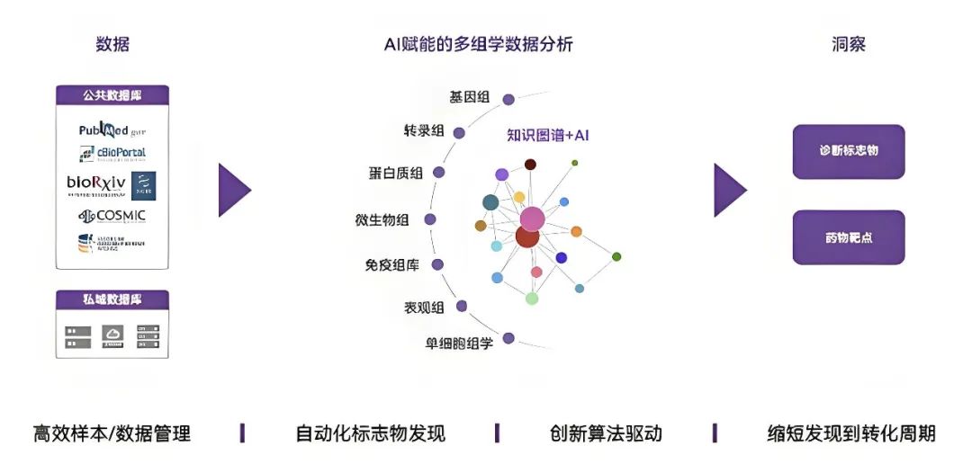 图说:发现平台可提供的服务这些前沿的服务,将由多位来自斯坦福大学、耶鲁大学、康奈尔大学、阿斯利康等全球一流院校及大型生物医药企业的专家团队联手打造,他们将发挥各自在数据科学、算法科学、软件工程等领域的专业优势,为平台构建起坚实的AI创新研发能力基础。菲鹏前瞻性布局AI生物科技领域 为行业革新提供新思路今年6月,菲鹏集团旗下子公司菲鹏数辉发布AI蛋白质动态构象创新模型DeepConformer,带来人工智能在药物设计领域应用的重大突破;当前,知识驱动的生物标志物发现平台的全新亮相,将打破生物标志物发现的传统路径,加速精准诊疗的步伐,也进一步突显菲鹏在AI诊疗领域的前瞻性布局。AI的加持让业界形象地称本世纪为“压缩的21世纪”,亦即未来50至100年的生物科技突破可能提速到5至10年内完成。身处这趟“生物科技高速列车”,菲鹏将让AI在自身业务布局中发挥更大作用,推动以诊断、制药、AI三大板块为基础的诊疗生态一体化建设,为行业革新提供新思路。未来,知识驱动的生物标志物发现平台将在菲鹏业务发展及行业趋势引领下,迈向“AI驱动”,通过知识图谱与深度学习的密切结合,打造具备自学习、自优化能力的诊断系统,与精准医疗共同进入全面智能化新阶段,大大提升生物标志物在临床应用的速率与效率,助力人类生命健康事业跨越式发展。