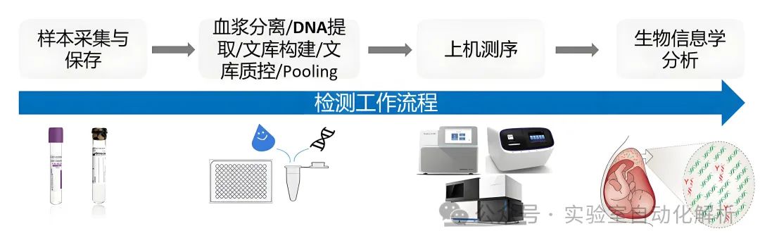 NIPT的检测流程通常涵盖以下步骤:(1)血液样本的采集与保存;(2)血浆分离,即血液样本的前处理,从全血样本中分离得到上层血浆;(3)DNA提取,即从血浆中提取核酸;(4)文库构建,通常遵循全基因组文库的构建流程;(5)文库质控,确保文库的可靠性;(6)Pooling,即将不同的DNA文库按照一定的规则进行混合;(7)上机测序,即将混合后的pooling文库进行测序操作,从而降低测序成本,提高测序通量;(8)生物信息学分析,即对测序结果进行数据分析。这一系列精确而有序的操作确保了检测的准确性和高效性。 在实验室常规处理流程中,主要包括以下几个环节:血浆分离、DNA提取、文库构建、文库质控、Pooling,随后是上机测序和生物信息学分析。在这些环节中,上机测序前的步骤通常被统称为“湿实验”,这些环节对自动化的需求尤为迫切。 血浆分离 血浆,作为抗凝全血经过离心后获得的上层清液,富含纤维蛋白原及其他凝血因子。由于其保留了血液成分的原始状态,并且产量优于血清,血浆在血液成分检测领域得到了广泛应用。这一特性使得血浆成为临床诊断和研究中的重要样本类型。 为了进行血浆中游离核酸的测序,所需的血浆必须高度纯净,避免母体基因组DNA的干扰。因此,在血浆分离过程中,必须严格避免接触白膜层。同时,为了确保实验的顺利进行,所需的血浆量相对较大,通常需达到500μL-1mL以上(因此,在血浆分离和提取阶段,操作通常采用离心管进行。而到了文库构建环节,由于所需体系体积较小,PCR管成为更合适的选择。这一转换过程,从大体积离心管到小体积PCR管的操作,可能会为实验人员带来一定的操作不便)。 一般推荐的血浆分离方法是两步离心法。孕妇外周血在4℃条件下进行1600× 分离完的血浆样本可在-20℃暂存1周,应避免反复冻融,可在-70℃以下长期保存。此步骤操作应双人复核标本信息。正常血浆呈透亮的黄色或淡黄色,无明显溶血;如有严重溶血或颜色异常等情形,须登记注明标本状态并重新采血。 痛点分析 在血浆分离过程中,为确保游离核酸测序结果的精确性,必须获得高度纯净的血浆,避免母体基因组DNA的污染。这一过程要求操作人员极为细心,严格避免触及白膜层,这是一项对技术熟练度有较高要求的专业操作,对于初学者而言,具有一定的挑战性。 自动化解决方案 在当前自动化血液样本组分分装领域,已知的有Hamilton EasyBlood高分辨成像血液分装系统,它专长于对离心后的全血样本进行血浆和白膜层的自动识别与分装。此外,Hamilton EasyBlood系统具备与自动化开盖机和二维码阅读模块(Hamilton LabElite IDCapper)的无缝整合能力,能够实现血液样本管条码识别、分层界面识别、吸取、分装、留样以及开关盖等操作的全面自动化。 这款设备我尚未亲自体验,非常欢迎那些已经使用过的朋友们留下您的宝贵意见,分享您的使用体验。 在处理大批量样本时,人工开启样本管盖的操作不仅繁琐,而且极为耗时。因此,采用自动化仪器进行样本管的自动开盖,能够显著提升工作效率,成为更为理想的选择。另外,自动化操作流程中,将血浆直接分装至深孔板,可简化后续的提取步骤,提高实验操作的便捷性和效率。尽管如此,剩余的样本仍需分装至EP管中,以便进行妥善保存。 DNA提取 DNA提取技术多样化,在市场上广泛应用的提取方法主要有磁珠法、硅胶膜离心柱法等。其中,磁珠法在核酸提取过程中表现出较高的自动化兼容性,使得操作更加便捷和高效。 正如新型冠状病毒肺炎诊疗中新型冠状病毒核酸检测通量高、时效性要求高的特点,对核酸提取技术提出了新的要求——高效、便捷、大通量,原有的手工提取核酸的方法,已经很难满足大规模、高通量的实验要求,在这种背景下,自动化核酸提取应运而生。 磁珠法自动核酸提取技术已达到高度成熟,根据移液特点主要分为磁棒法和移液法两种类型,前者转移的是磁珠,后者转移的是液体。 磁棒法自动核酸提取仪相对应用较多。以ThermoFisher KingFisher Flex系统为例,该设备利用特质的一次性磁套和磁棒进行操作,每批次能够高效处理24至96个样本。 操作流程包括将样本与功能化磁珠及试剂混合后,均匀分配至板孔中。在启动运行时,系统会自动装载磁套。仪器通过磁力作用从溶液中捕获磁珠,随后将其精准释放至含有下一步分离所需试剂的板孔内。这种磁珠的收集与转移机制,确保了洗涤过程的高效性、洗脱步骤的快速性以及整个处理流程的顺畅性。 相对于移液法,磁棒法的优点在于:(1)每一步的液体不会残留,因为磁棒只带走磁珠,然后转移到下一个步骤相应的反应孔中;(2)其编程简单,易维护,机器设备成本更低。 缺点就是不能将手动法磁珠提取试剂直接拿来使用,而需要根据机器特点优化试剂操作。 移液法自动核酸提取仪主要通过移液工作站来实现,如Beckman, Tecan, Hamilton等设备,它利用移液器精确转移液体,以完成核酸的分离与纯化。 相较于磁棒法,移液法的优势体现在:(1)移液过程中有效避免了液体滴落导至的交叉污染;(2)兼容多种磁珠法核酸提取试剂,几乎所有适用于手工操作的试剂均可在该类设备上使用。 然而,这种技术也存在一些不足之处:(1)容易在设备中残留废液,残留的洗涤液中的盐分和乙醇/异丙醇可能会影响后续的洗脱效率和PCR反应的成功率;(2)操作时间相对较长;(3)需要专业的编程和维护,导至设备成本较高,同时移液