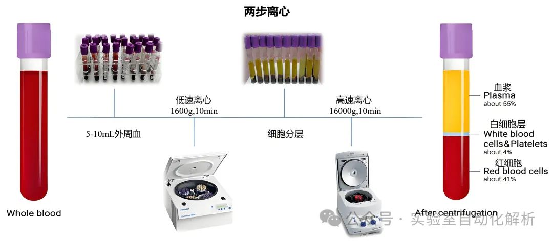 NIPT的检测流程通常涵盖以下步骤:(1)血液样本的采集与保存;(2)血浆分离,即血液样本的前处理,从全血样本中分离得到上层血浆;(3)DNA提取,即从血浆中提取核酸;(4)文库构建,通常遵循全基因组文库的构建流程;(5)文库质控,确保文库的可靠性;(6)Pooling,即将不同的DNA文库按照一定的规则进行混合;(7)上机测序,即将混合后的pooling文库进行测序操作,从而降低测序成本,提高测序通量;(8)生物信息学分析,即对测序结果进行数据分析。这一系列精确而有序的操作确保了检测的准确性和高效性。 在实验室常规处理流程中,主要包括以下几个环节:血浆分离、DNA提取、文库构建、文库质控、Pooling,随后是上机测序和生物信息学分析。在这些环节中,上机测序前的步骤通常被统称为“湿实验”,这些环节对自动化的需求尤为迫切。 血浆分离 血浆,作为抗凝全血经过离心后获得的上层清液,富含纤维蛋白原及其他凝血因子。由于其保留了血液成分的原始状态,并且产量优于血清,血浆在血液成分检测领域得到了广泛应用。这一特性使得血浆成为临床诊断和研究中的重要样本类型。 为了进行血浆中游离核酸的测序,所需的血浆必须高度纯净,避免母体基因组DNA的干扰。因此,在血浆分离过程中,必须严格避免接触白膜层。同时,为了确保实验的顺利进行,所需的血浆量相对较大,通常需达到500μL-1mL以上(因此,在血浆分离和提取阶段,操作通常采用离心管进行。而到了文库构建环节,由于所需体系体积较小,PCR管成为更合适的选择。这一转换过程,从大体积离心管到小体积PCR管的操作,可能会为实验人员带来一定的操作不便)。 一般推荐的血浆分离方法是两步离心法。孕妇外周血在4℃条件下进行1600×g低速离心10min,吸取上清液转入离心管中,在吸取血浆过程中不能吸到中间层的白细胞及红细胞,然后将上清液16000×g离心10min,吸取上清液至另一个2ml离心管中,避免吸到底层残留细胞。如不慎吸到细胞成分,应将吸取的血浆重新置回管中,重新离心后再进行血浆分离。 分离完的血浆样本可在-20℃暂存1周,应避免反复冻融,可在-70℃以下长期保存。此步骤操作应双人复核标本信息。正常血浆呈透亮的黄色或淡黄色,无明显溶血;如有严重溶血或颜色异常等情形,须登记注明标本状态并重新采血。 痛点分析 在血浆分离过程中,为确保游离核酸测序结果的精确性,必须获得高度纯净的血浆,避免母体基因组DNA的污染。这一过程要求操作人员极为细心,严格避免触及白膜层,这是一项对技术熟练度有较高要求的专业操作,对于初学者而言,具有一定的挑战性。 自动化解决方案 在当前自动化血液样本组分分装领域,已知的有Hamilton EasyBlood高分辨成像血液分装系统,它专长于对离心后的全血样本进行血浆和白膜层的自动识别与分装。此外,Hamilton EasyBlood系统具备与自动化开盖机和二维码阅读模块(Hamilton LabElite IDCapper)的无缝整合能力,能够实现血液样本管条码识别、分层界面识别、吸取、分装、留样以及开关盖等操作的全面自动化。 这款设备我尚未亲自体验,非常欢迎那些已经使用过的朋友们留下您的宝贵意见,分享您的使用体验。 在处理大批量样本时,人工开启样本管盖的操作不仅繁琐,而且极为耗时。因此,采用自动化仪器进行样本管的自动开盖,能够显著提升工作效率,成为更为理想的选择。另外,自动化操作流程中,将血浆直接分装至深孔板,可简化后续的提取步骤,提高实验操作的便捷性和效率。尽管如此,剩余的样本仍需分装至EP管中,以便进行妥善保存。 DNA提取 DNA提取技术多样化,在市场上广泛应用的提取方法主要有磁珠法、硅胶膜离心柱法等。其中,磁珠法在核酸提取过程中表现出较高的自动化兼容性,使得操作更加便捷和高效。 正如新型冠状病毒肺炎诊疗中新型冠状病毒核酸检测通量高、时效性要求高的特点,对核酸提取技术提出了新的要求——高效、便捷、大通量,原有的手工提取核酸的方法,已经很难满足大规模、高通量的实验要求,在这种背景下,自动化核酸提取应运而生。 磁珠法自动核酸提取技术已达到高度成熟,根据移液特点主要分为磁棒法和移液法两种类型,前者转移的是磁珠,后者转移的是液体。 磁棒法自动核酸提取仪相对应用较多。以ThermoFisher KingFisher Flex系统为例,该设备利用特质的一次性磁套和磁棒进行操作,每批次能够高效处理24至96个样本。 操作流程包括将样本与功能化磁珠及试剂混合后,均匀分配至板孔中。在启动运行时,系统会自动装载磁套。仪器通过磁力作用从溶液中捕获磁珠,随后将其精准释放至含有下一步分离所需试剂的板孔内。这种磁珠的收集与转移机制,确保了洗涤过程的高效性、洗脱步骤的快速性以及整个处理流程的顺畅性。 相对于移液法,磁棒法的优点在于:(1)每一步的液体不会残留,因为磁棒只带走磁珠,然后转移到下一个步骤相应的反应孔中;(2)其编程简单,易维护,机器设备成本更低。 缺点就是不能将手动法磁珠提取试剂直接拿来使用,而需要根据机器特点优化试剂操作。 移液法自动核酸提取仪主要通过移液工作站来实现,如Beckman, Tecan, Hamilton等设备,它利用移液器精确转移液体,以完成核酸的分离与纯化。 相较于磁棒法,移液法的优势体现在:(1)移液过程中有效避免了液体滴落导至的交叉污染;(2)兼容多种磁珠法核酸提取试剂,几乎所有适用于
