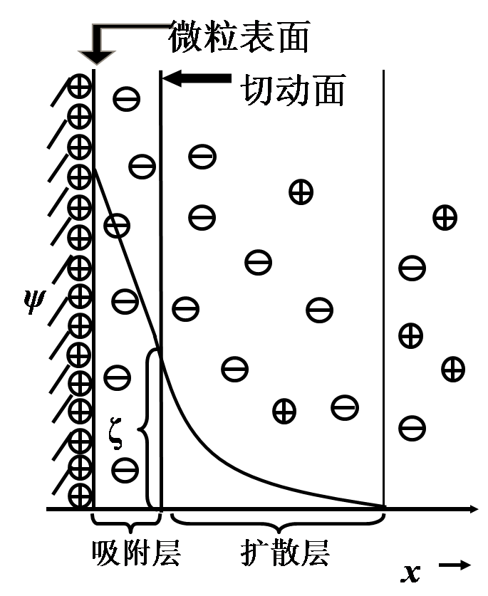 胶体:粒径在1nm~10μm之间的分散质粒子与相应的分散相(连续相)组成的分散体系 DLVO理论:(Derjaguin & Landau, 1941 Verwey & Overbeek, 1942) (1) Van der Walls 引力(远程力) (2) 静电斥力(近程力) 两者总结果,形成能垒,是溶胶的稳定点 Double Layer 双电层 ● 双电层的厚度决定微球之间的静电排斥的强弱 ● 微球双电层的厚度随盐浓度的升高而显著降低 ● 粒径越小的磁珠对盐浓度更为敏感