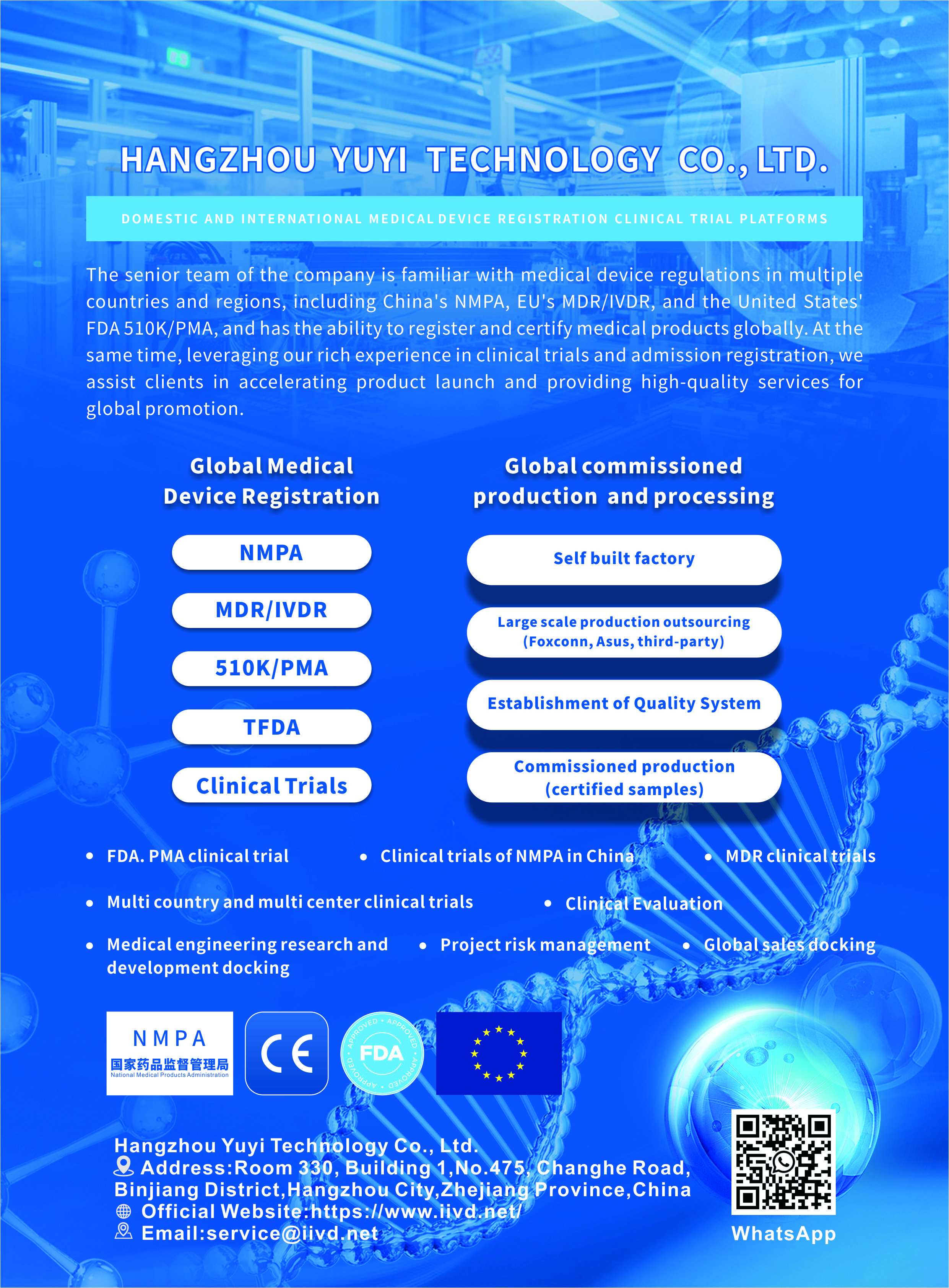 全球医疗器械注册 Global Medical Device Registration 1. NMPA 2. MDR/IVDR 3. 510K/PMA 4. TFDA 5. Clinical Trials