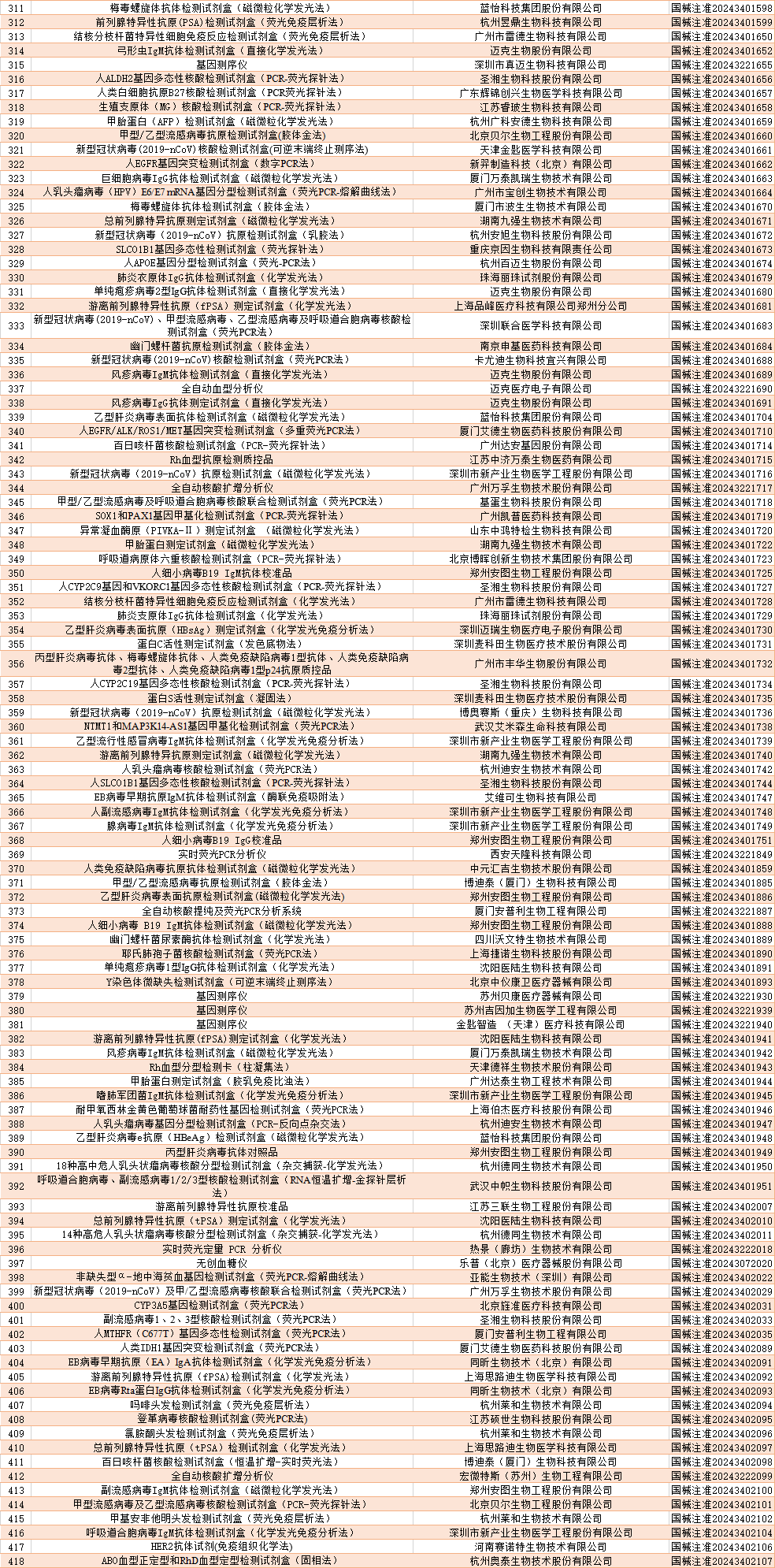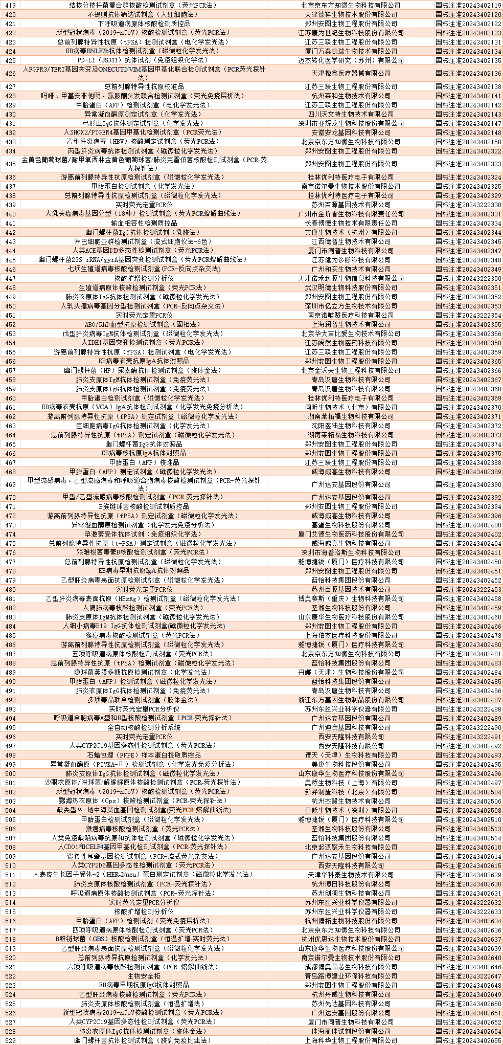 截至2024年12月,国家药品监督管理局共批准注册IVD产品650个。其中,境内第三类IVD产品529个,进口第三类IVD产品42个,进口第二类IVD产品76个,港澳台IVD产品3个。