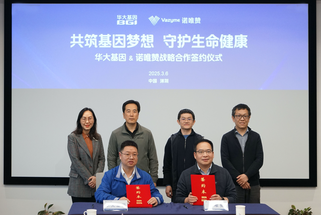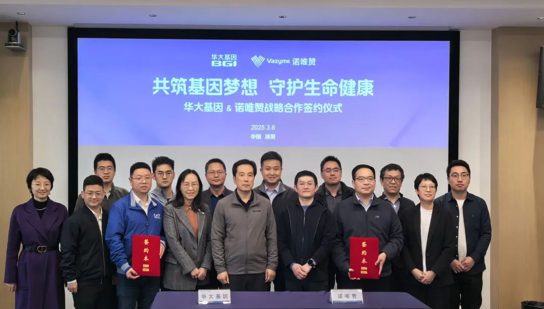 3月6日,深圳华大基因股份有限公司 (以下简称“华大基因”) 与南京诺唯赞生物科技股份有限公司 (以下简称“诺唯赞”) 在华大时空中心正式签署合作协议,华大基因总经理赵立见、副总经理李治平、李浩、杨昀、医学产品研发负责人唐冲,以及诺唯赞董事长、总裁曹林、高级副总裁唐波等双方核心人员出席仪式。双方将聚焦生命科学、体外诊断领域,旨在通过优势互补,共同推动技术创新与产品应用落地,为脑科学和脑健康事业发展注入新动力,开创中国生物科技协同发展的新范式。 合作背景 在全球范围内,阿尔茨海默病 (Alzheimer's disease,AD) 的发病形势愈发严峻,我国也深受其扰。根据《中国阿尔茨海默病报告2024》[1],我国AD患者达1,314万,占全球25.5%。随着美国AD诊断标准转向生物标志物导向[2],血液p-tau217在单抗类药物(如Lecanemab、Donanemab) 的早期干预中发挥双重作用:一方面,基线p-tau217水平可精准选出Aβ病理活跃的早期患者 (特异性>96%) [3],为单抗治疗提供入组依据;另一方面,其治疗后3-6个月的下降幅度与脑内Aβ清除率及认知保护效应直接相关 (r=0.82) [4],成为预后评估的动态窗口。研究证实,接受单抗治疗的早期患者认知衰退显著延缓,而p-tau217的快速下降与临床疗效高度同步[5]。相较于传统PET/脑脊液检测,p-tau217的微创性、低成本及可重复性,使其贯穿AD全病程管理--从早期筛查、治疗靶点确认到疗效动态监测,最终推动“精准用药-实时反馈-预后预判”的临床闭环形成[6],这一突破标志着血液标志物正从辅助诊断工具升级为AD精准治疗时代的重要决策依据[7]。 签约仪式 签约仪式上,华大基因CEO赵立见介绍了华大在生命科学领域的最新成果,重点分享了人工智能与精准医学领域的前沿进展。对于本次诺唯赞与华大基因的合作,赵立见强调,华大基因一向重视全产业链生态布局,双方是行业的引领者,更应把握时代机遇,共同引领行业发展。未来,双方可在主动健康管理、围绕认知障碍等多个慢病领域持续加深合作,携手并进,以科技创新促进新质生产力发展。 诺唯赞董事长曹林在致辞中强调,此次合作是技术研发与产业转化协同的重要里程碑。它不仅实现了企业间的资源优化整合,更将显著加速科研成果向临床应用的转化进程,有力推动我国生命科学产业链自主可控发展,最终造福广大患者群体。 双方代表签署合作协议后,围绕具体合作项目的技术落地路径展开了闭门研讨,为后续合作执行奠定了坚实基础。未来,华大基因与诺唯赞将紧密携手,充分发挥各自在技术研发、产品生产、市场推广等方面的优势,聚焦阿尔茨海默病 (AD) 的早期发现、精准诊疗和疗效评估。通过推动临床科研、完善临床诊疗路径、加强患者认知教育和优化就诊流程等多方面举措,共同探索AD精准诊疗一体化生态解决方案的临床应用,致力于提升AD的早期发现率,改善患者预后生活水平,为攻克阿尔茨海默病这一全球性难题贡献中国力量。 关于华大基因 深圳华大基因股份有限公司 (股票代码:300676) 是全球领先的科学技术服务提供商和精准医疗服务运营商,通过基因检测、质谱检测、生物信息分析等多组学大数据技术手段,为科研机构、企事业单位、医疗机构、社会卫生组织等提供研究服务和精准医学检测综合解决方案,以推动生命科学研究进展、生命大数据应用和提高全球医疗健康水平为出发点,致力于基因领域研究成果及精准检测技术在民生健康方面的应用。 关于诺唯赞 南京诺唯赞生物科技股份有限公司 (股票代码:688105) 是一家围绕酶、抗原、抗体等功能性蛋白及高分子有机材料进行技术研发和产品开发的生物科技企业,依托于自主建立的关键共性技术平台,先后进入了生物试剂、体外诊断业务领域,并正在进行治疗性生物制品的开发,是国内少数同时具有自主可控上游技术开发能力和终端产品生产能力的研发创新型企业。 |