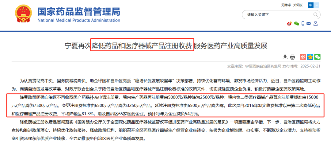 据国家药品监督管理局网站显示,为认真贯彻党中央、国务院减税降负、助企纾困和自治区党委“稳增长促发展攻坚年”决策部署,持续优化营商环境,激发市场经济活力,近日,自治区药监局主动作为,商请自治区发展改革委、财政厅联合出台关于降低自治区药品和医疗器械产品注册收费标准的政策文件,切实减轻医药企业负担,积极打造惠企医药政策高地。