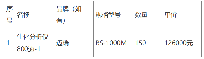 早在5月26日的时候,河南省卫生健康委员会的河南省县域医共体设备更新项目(一期)项目 - 全自动生化分析仪的中标公告就已经发布了,在这个项目里,迈瑞成功中标。