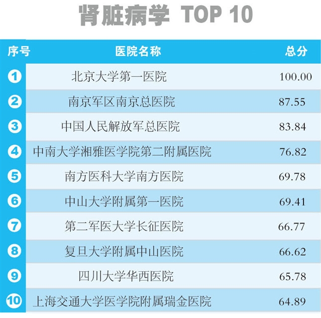 2014年度中国医院科技影响力排行榜(肾脏病学)