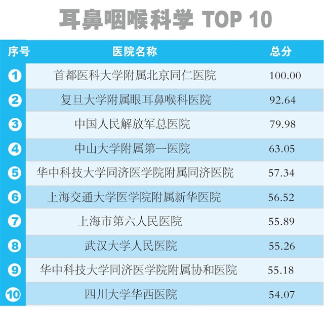 2014年度中国医院科技影响力排行榜(耳鼻咽喉科学)
