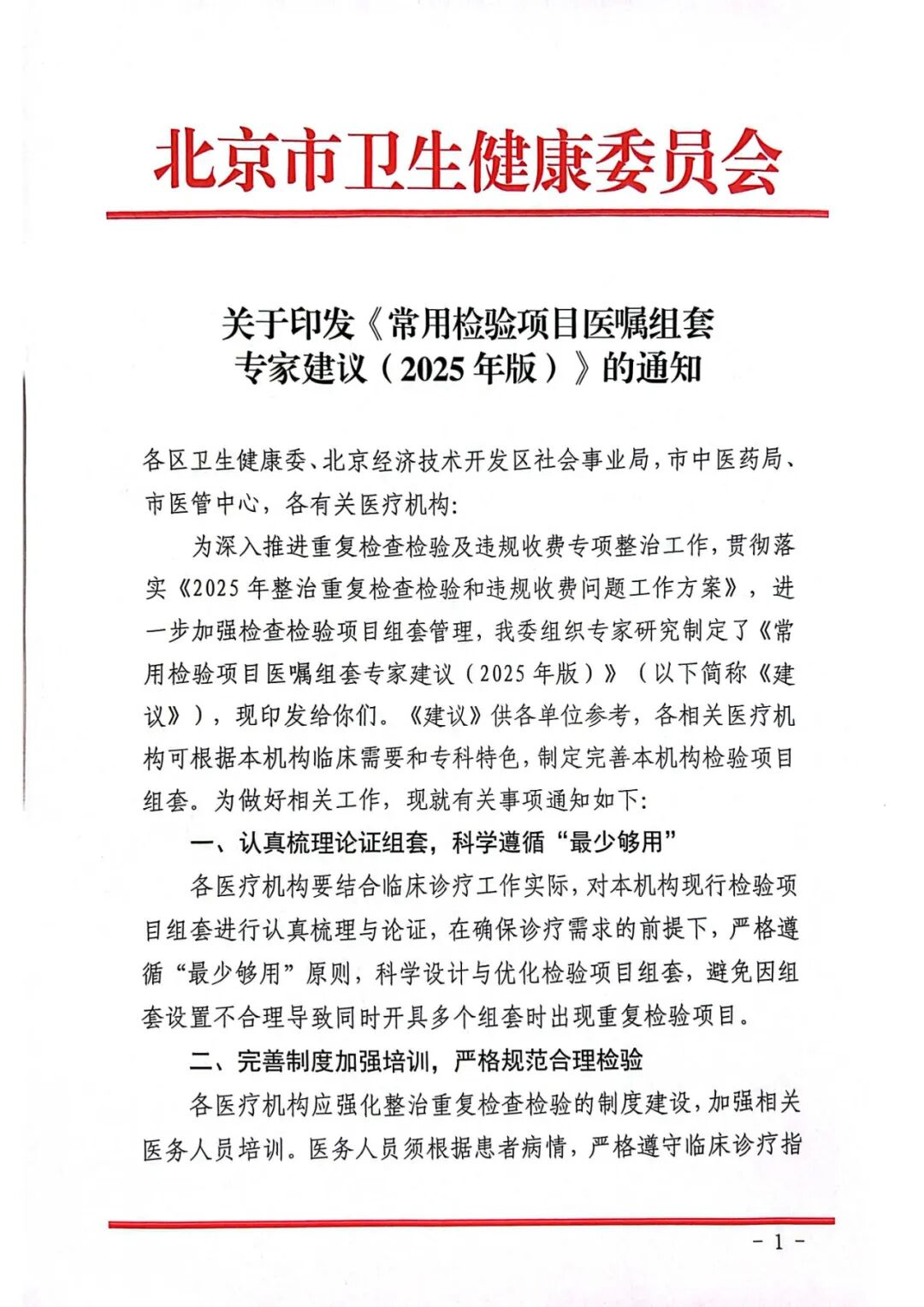 近日,业内流传一份表头为北京市卫健委的“关于印发《常用检验项目医嘱组套专家建议(2025版)》的通知”(以下简称《专家建议》),提出了涵盖血液体液、生化、免疫和微生物等的检验组套27项(具体见文末)。