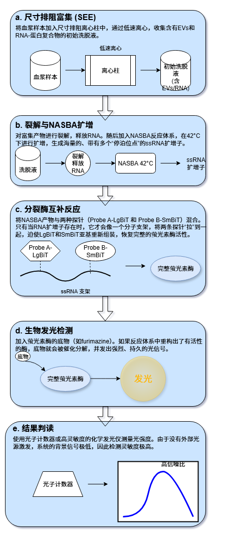 该方法将高效的NASBA扩增与极其灵敏的生物发光系统相结合,其读出背景信号极低,实现了惊人的检测下限。