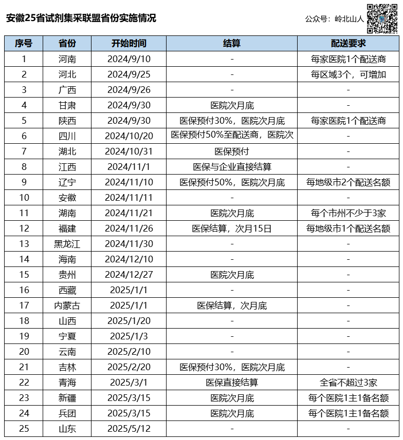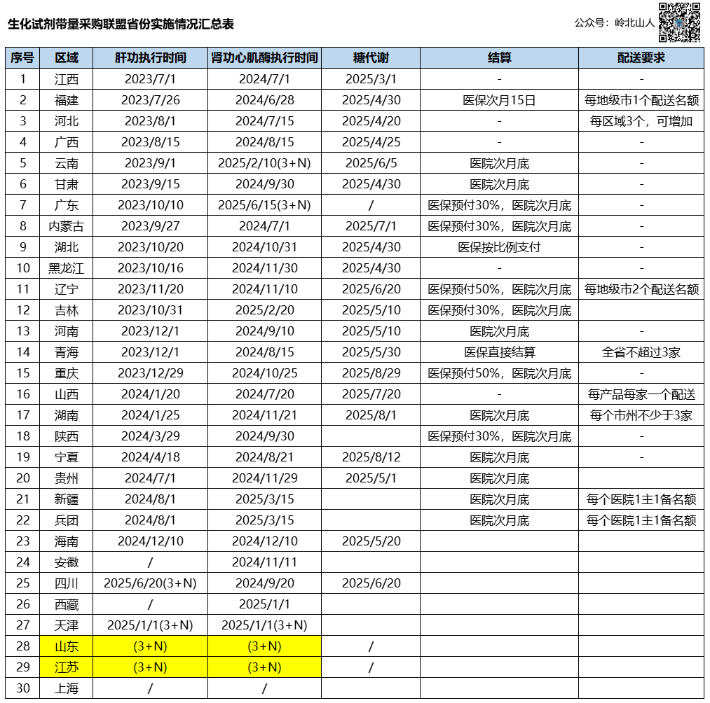 2024年京津冀3+N肾功生化试剂带量联动联盟:天津、云南、广东、山东、江苏五省加入,截至目前,天津、云南、广东均已经开始执行。