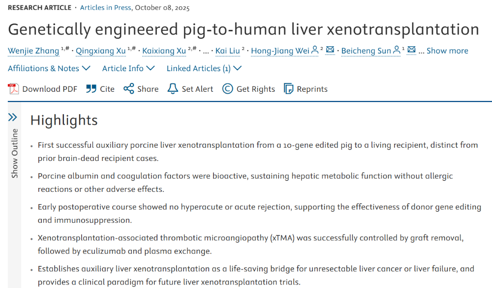 2.Heiner Wedemeyer, et al. The first human xenogeneic liver transplantation – A landmark event, but what does it mean for hepatology?. Journal of Hepatology. doi.org/10.1016/j.jhep.2025.09.015