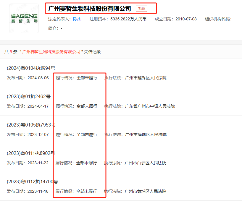 据天眼查数据显示,赛哲生物从23年-24年的案件全部未执行,更是被天眼查打上了“老赖”的标签! 其法定代表人陈杰也已被列入失信被执行人,限制高消费名单! 赛哲生物成立于2010年,2016年在新三板挂牌上市,2017年与illumina NGS平台达成病原体检测战略合作。赛哲生物是一家专注于病原微生物检测服务——以高通量测序技术为驱动核心,采用多种生物技术手段进行病原微生物的定性和定量检测,旨在成为专业从事微生物预防、诊断和精准治疗的集团化企业。 时间追溯到2010年7月,毕业于香港浸会大学,刚刚在莱德尔生物做运营总监的陈杰联合了一群志同道合的朋友成立了赛哲生物,当时赛哲拥有两台Life Ion Torrent高通量测序仪(PGM和Proton)、ABI的定量PCR仪、BD流式细胞仪和荧光显微镜等一批高端实验仪器和设备,申请了3项政府研发基金资助项目并获得立项。前期也进行了一些融资,但没法支撑其大量的研发投入。 2016年,赛哲生物(836895)发布公开转让书概要,寻求股权转让来获得更多的发展资金,从2016-2018年我们看到其进行了四次注册资本数额变更,但变更金额均不大。最大的一笔为2016年增加了1289万。 而彼时,赛哲生物拿出来的成绩单并不好看,报告期2013年度、2014年度、2015年1-8月,公司经营活动产生的现金流量净额分别为-862,507.56元、3,483,630.83元和-8,345,155.42元,照着这个烧钱速度赛哲不会坚持太久。 赛哲对mNGS市场洞察的太早,早到当时大部分mNGS公司都还没有成立,只有自己在默默地教育客户去接受一个完全新的检测手段。 mNGS产业真正的兴起,发生在2019年。 一批在NGS领域深耕良久的创业者们开始了新赛道的二次创业,如原华大基因李永军创立微远基因、原诺禾致源蒋智创立金匙医学、原贝瑞基因王珺创立杰毅生物等。 这批专精于mNGS赛道的企业,生于NGS行业苦寻新方向之际。在生育遗传、肿瘤、早筛,甚至消费级基因检测已经日趋白热化后,终于,感染的大市场,成为NGS临床应用的又一个重要场景。 这批企业很快拿到了融资,且融资金额均不低: 那2018-2020年这段时间,赛哲在做什么? 按照其公布的财报来看,其在2018年的有100多万的净利润,但在扣非之后净利润为-1940万。依旧大幅度亏损。 2019年5月,赛哲生物向广发融资租赁(广东)有限公司抵押了11台实验室重要仪器,被担保债权数额:576.324万人民币。 在百般周旋下,赛哲生物拖到了2022年,但随着而来的各种借款和银行贷款的催账,巨额的金融成本让赛哲再也喘不过气来,在各种诉讼中来回拉扯,到2023年,赛哲生物的员工和业务也也已经丢的差不多了,员工也锐减至3-4人。 初代的mNGS老兵,就这样落下帷幕,而赛哲生物在苦苦坚持10年之后,依然没有等到自己的行业风口,虽然在后期mNGS已经热门起来了,但自身暴露的百般弊病让它并没有抓住发展的机会。 来源:基因江湖、赛哲生物、中国裁判文书网、企查查、天眼查等 |