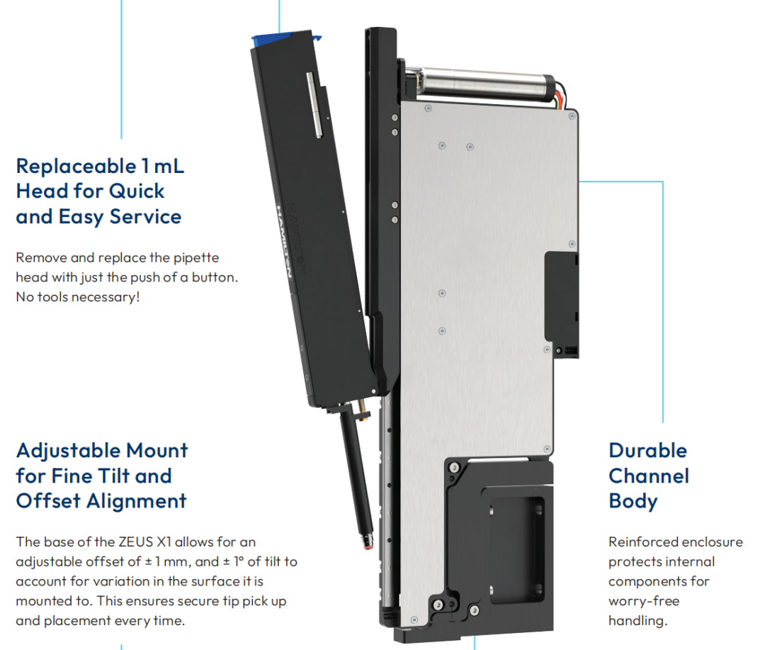 自动化移液工作站是一种通过精密机械臂和智能控制系统实现高精度液体处理的实验室设备,主要应用于药物研发(高通量筛选)、基因组学(核酸纯化)、临床检测(ELISA/肿瘤分析)及生命科学实验(PCR体系构建)等,显著提升实验效率并减少人为误差。 自动化移液工作站的基本组成和常用的功能模块有:整机框架结构,机械臂运动模块,耗材板位模块,移液模块,振荡模块,热振荡模块,温度控制模块,温控振荡模块,磁力架模块,PCR仪模块,紫外消毒模块,HEPA模块,抓取模块,扫码模块,管类载架模块,垃圾桶模块等,下面简单介绍一下这些功能模块。 整机框架结构是自动化移液工作站的主体,决定了仪器的整机尺寸和外观形态。其结构设计决定了仪器的使用方法,与实验人员的交互方式,操作的便利性,仪器通量的大小,使用场景等,因此是仪器设计中非常重要的一部分。整机框架结构包括仪器框架,仪器视窗,仪器安全门,仪器台面。客户希望能够买到一台功能全面的仪器,能够兼容更多的实验流程,这就要求仪器要做到模块化设计,高度可拓展性,能够根据实验需求灵活的切换台面配置。 功能:工作站的核心骨架和执行机构。通常包含精密的 XYZ轴线性导轨或机械臂,负责在三维空间内精确、快速地移动移液器模块、抓取模块或其他功能模块到指定位置。 关键技术点:XYZ轴的运动精度(一般要求0.2mm)、重复定位精度(一般要求±0.1mm)、运动速度、行程范围等核心指标。是整个工作站协调运作的基础。 主要结构形式:1)通常只有一个X轴(左右方向),主要的传动形式有:同步带传动,齿轮齿条传动,直线电机传动。 2)Y轴的数量不固定,取决于仪器搭载的移液模块,单通道移液模块和96通道移液模块只有一个Y轴,独立四通道移液模块就有四个Y轴,独立八通道移液模块就有八个Y轴。主要的传动形式有:同步带传动,齿轮齿条传动,直线电机传动,丝杆传动。 3)Z轴的数量同样不固定,跟移液模块相搭配,单通道移液模块和96通道移液模块只有一个Z轴,独立四通道移液模块就有四个Z轴,独立八通道移液模块就有八个Z轴。主要的传动形式有:同步带传动,齿轮齿条传动,丝杆传动。 功能:工作站台面上的固定或可移动区域,用于放置各种实验耗材。这是最基础的“容器”。 一般设计要求体积要小,能够兼容常用的标准耗材(96孔、384孔等微孔板,96孔PCR板,酶标板等),盒装吸头耗材, 关键点:设计需兼容标准耗材尺寸,定位精确,便于移液模块操作,方便抓取模块抓取,方便用户操作。 主要结构形式:一般有两种放置耗材的形式,一种是固定尺寸限位设计:结合耗材尺寸,预留一定微小间隙设计结构放置耗材;另一种是弹性结构设计:采用弹性结构压紧耗材边缘,耗材放置之后对中性好,位置准确。 功能:用于混匀微孔板中的液体,确保反应物充分接触。 关键点:振荡速度(100-4000RPM)、幅度(1mm,2mm,3mm)、振荡时间可编程控制、兼容常用SBS板类耗材。 主要结构形式:为了方便集成到移液工作站内部和节省工作站内部空间要求模块尺寸小,只占用工作站内一个工作板位区域。常见的有两种类型:一种是磁性振荡设计,振荡形式支持轨道和线性两种方式,模块结构尺寸小,模块负载相对小(<500g)。 典型产品 Inheco Teleshake; 另一种是电机带动偏心轴实现振荡原理,模块尺寸取决于电机尺寸大小,负载也取决于电机转矩大小,例如 奥盛Au-Shaker 5012L/3020L。 功能:结合了精确温度控制(加热)和振荡功能。主要用于需要孵育和混匀的应用,例如 PCR 反应前的模板变性、酶切反应、或某些结合/洗脱步骤。 关键点:升温速率、温度准确性、表面温度均匀性、温度范围、振荡速度(100-3000RPM)、幅度(1mm,2mm,3mm)、振荡时间可编程控制、兼容常用SBS板类耗材。 主要结构形式:振荡原理是电机带动偏心轴实现;加热原理是PI加热膜进行加热;某些产品具有耗材自动加持功能;产品尺寸上各有差别,但是相差不大。为了方便集成到移液工作站内部和节省工作站内部空间要求模块尺寸小,只占用工作站内一个工作板位区域。市场上典型产品:Inheco Teleshake 95 AC;奥盛Au-Shaker 3020TL,耐优MHS-12/20/30-S。 功能:提供精确的加热或制冷功能,维持微孔板、试管或反应模块在特定温度(如 4°C, 37°C, 95°C)。用于孵育、酶反应、等步骤。 关键点:升降温速率、温度准确性、表面温度均匀性、控温精度,兼容常用SBS板类耗材。 主要结构形式:模块性能要求升降温速度要快,控温精度要求高,表面均匀性要求高,所以一般都采用TEC模块来实现加热制冷功能,结合散热片和风扇进行风冷散热。为了方便集成到移液工作站内部和节省工作站内部空间要求模块尺寸小,只占用工作站内一个工作板位区域。典型产品:Inheco CPAC Ultraflat,Hamilton Heater Cooler,奥盛Au-Cooler,耐优MT-120-S, 功能:具有加热或制冷功能,同时也有振荡混匀功能,兼具温度控制模块和振荡模块双重功能。 关键点:升降温速率、温度准确性、表面温度均匀性、温度范围、振荡速度(100-3000RPM)、幅度(1mm,2mm,3mm等)、温度和振荡时间可编程控制、兼容常用SBS板类耗材。 主要结构形式:振荡原理电机驱动偏心轴转动实现振荡功能。加热或制冷功能一般有两种实现方式:一种是采用TEC模块+散热片风冷散热实现;另一种是采用TEC模块+液冷板+冷排,利用液冷散热。主要品牌有:Inheco Thermoshake AC,耐优 MTS-12/20/30,奥盛 SAu-Shaker 1530CL等。 功能:在特定板位下方或侧