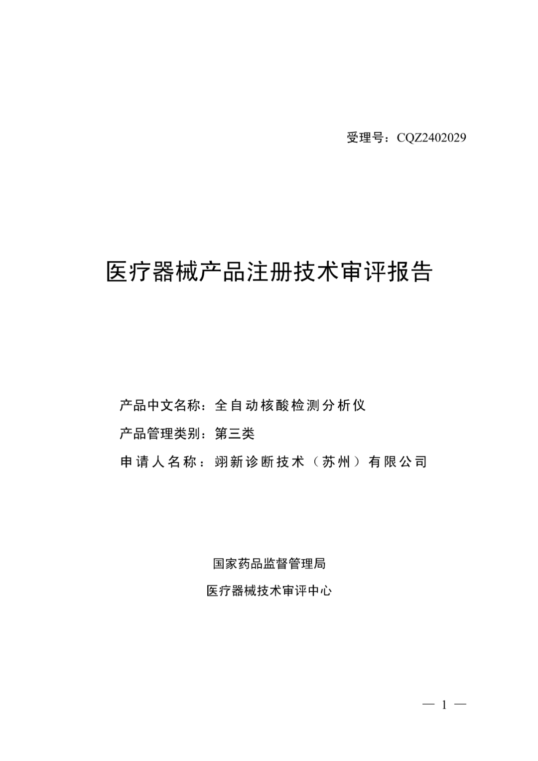 2025年9月29日,国家药监局批准了翊新诊断技术(苏州)有限公司的“全自动核酸检测分析仪”,注册证编号为:国械注准20253221958。