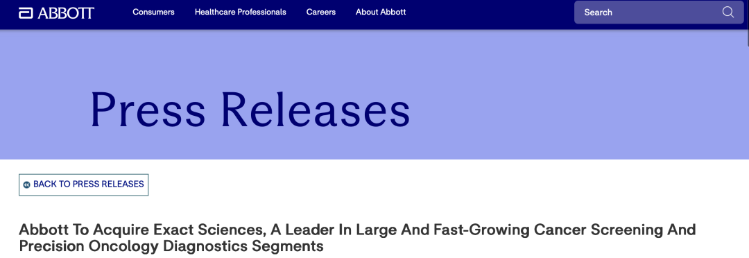 当地时间1120日,雅培正式宣布,将收购癌症筛查和精确肿瘤诊断领域的领导者Exact Sciences