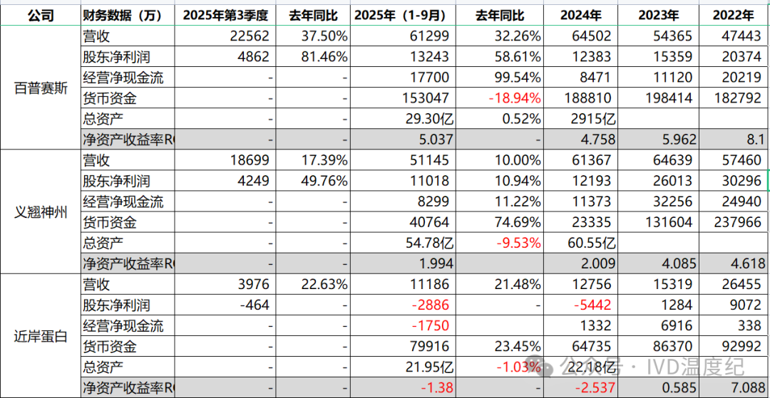 今年前三季度三家的营收都还是增长的状态预计年度营收应该也是增长。但近岸蛋白还是延续了净利润亏损的趋势,可能是研发投入大了?