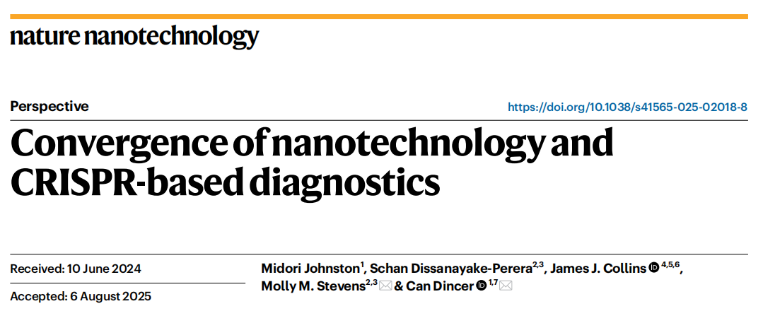 基于CRISPR的诊断技术(CRISPR-Dx)近年来在诊断领域展现出巨大潜力。其高灵敏度、高特异性、单碱基分辨率、稳健的等温核酸酶活性以及无需复杂仪器的特性,特别适合现场快速检测。然而,传统CRISPR-Dx在临床转化中面临样本制备复杂、信号放大依赖预扩增、检测靶标局限等挑战。与分子诊断技术的同步兴起,纳米技术的快速发展为增强CRISPR-Dx性能提供了新机遇。"纳米-CRISPR"的融合有望通过材料创新解决CRISPR-Dx在灵敏度、多重检测能力和便携性方面的瓶颈,推动其向即时诊断和个性化医疗方向发展。