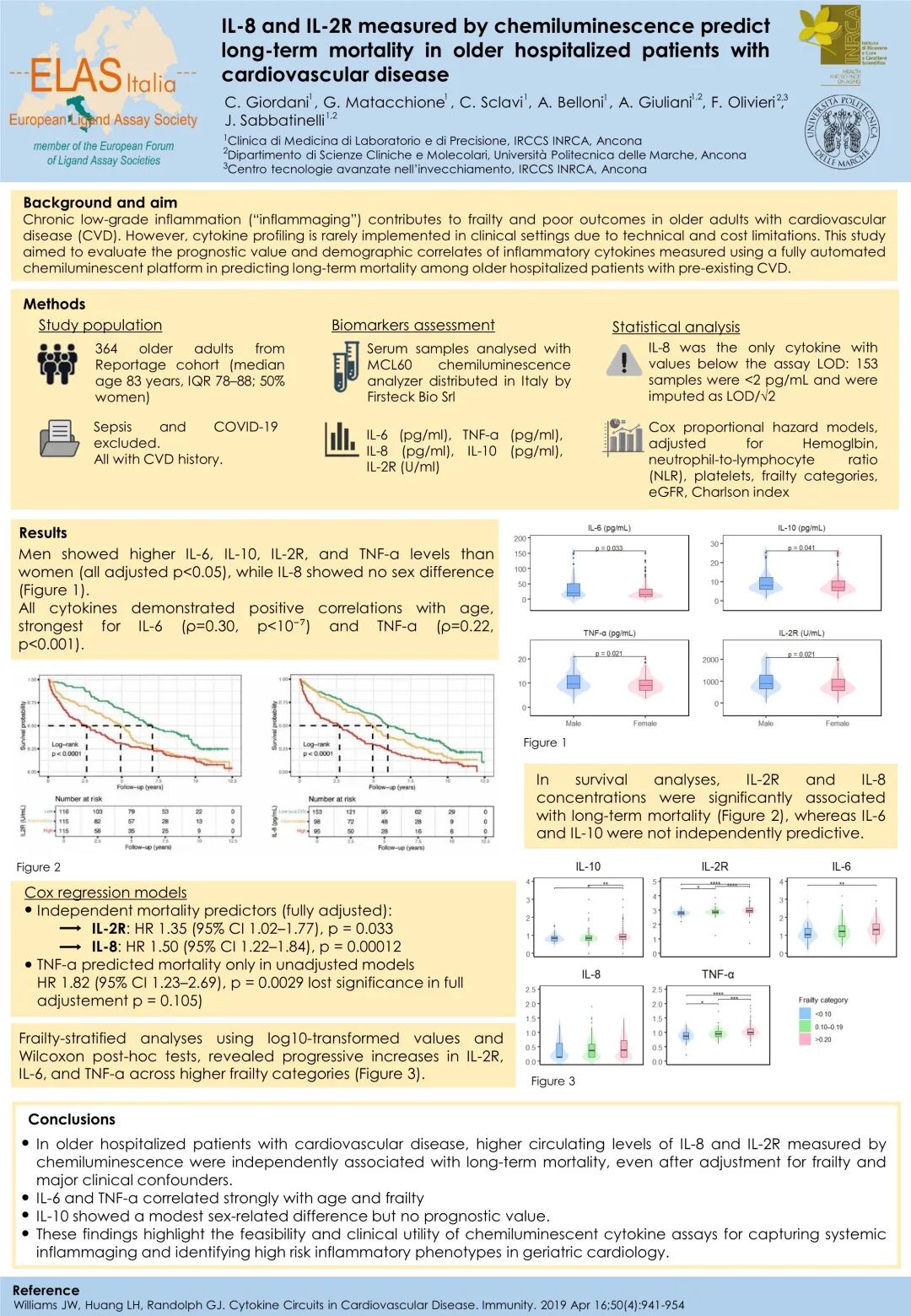 通过化学发光法测量的IL-8和IL-2R可预测老年心血管住院患者的长期死亡率