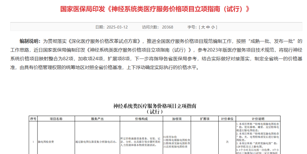 医保局也印发《神经系统类医疗服务价格项目立项指南(试行)》,设立了侵入式脑机接口置入费、取出费等价格项目;地方如浙江省出台《关于公布脑机接口相关医疗服务价格项目的通知》,明确侵入式脑机接口置入费6580元/次、取出费3150元/次,湖北、江苏两省的同类价格也与之接近。这意味着脑机接口治疗可能很快会被纳入医保支付范围,大大降低患者负担。