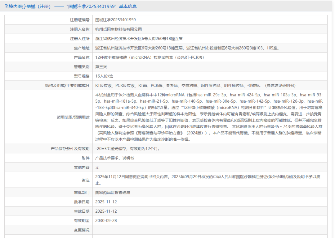 中国miRNA检测试剂盒获证(III类)企业梳理(截至26年1月)