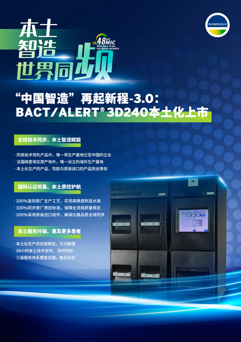 2月9日,生物梅里埃发文称,BACT/ALERT® 3D240本土化上市。