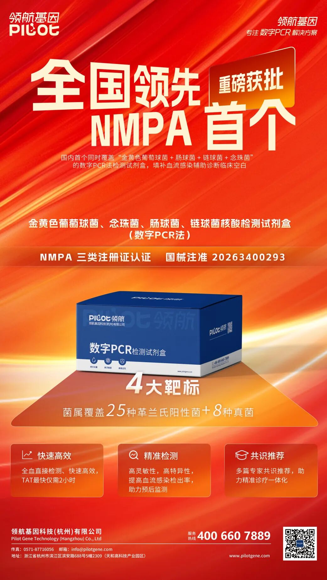 近日,领航基因研制的“金黄色葡萄球菌、念珠菌、肠球菌、链球菌核酸检测试剂盒”获得国家药品监督管理局(NMPA)三类医疗器械注册证,标志着该产品正式迈入临床应用新阶段。