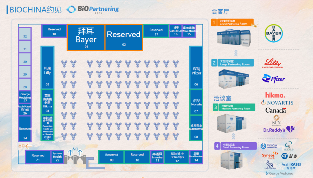 在全球产业加速融合、中国创新力量强势崛起的背景下,BIOCHINA2026搭建的“展览-大会-约见-活动”全维度体系,精准契合了MNC的战略需求。目前,拜耳、辉瑞、礼来、诺华、诺和诺德等头部MNC已率先锁定现场约见房间,近千位MNC高层、BD负责人与全球投资人、Biotech创始人一同进入约见系统,围绕XDC、多肽、AI制药、体内CAR-T等热门赛道洽谈合作。截至目前,四类约见房间即将售罄1000+高效精准约见即将达成,成为产业合作的“催化剂”。