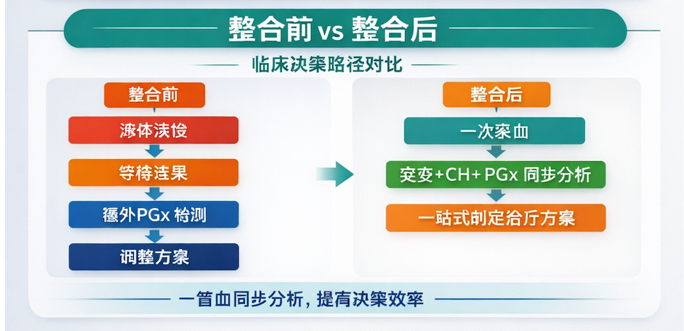 在传统路径中,PGx 往往是独立检测,甚至被忽略。医生在等待基因检测结果时,往往只能根据经验减量或密切监测。