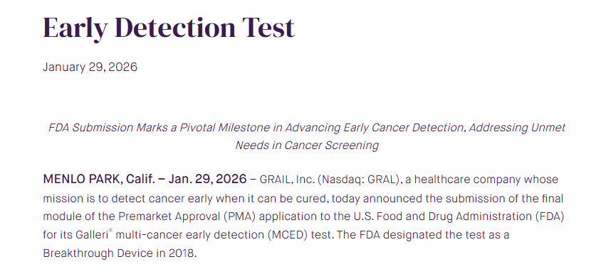 最近多癌早筛的一些新进展,可以为这种趋势增加佐证。1月底,GRAIL公司宣布向美国食品药品监督管理局提交其多癌早期检测产品Galleri的上市前审批申请,底气的来源-支持数据来自超过165,000名参与者的两项大规模研究,信心十足。