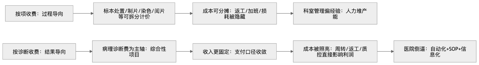 这就是为什么新政落地后,病理科的经营逻辑会变得像检验科甚至像生产线:TAT、返修率、切片合格率、染色一致性、耗材单耗,都会被摆上台面,变成院长能听懂的指标。 而IVD企业在这里要听懂另一句更狠的判断:“当‘病理诊断费’成为固定额度的盲盒,自动化不再是效率锦旗,而是盈利的生死线。” 传导链条:医保定价如何逼迫医院改变采购偏好