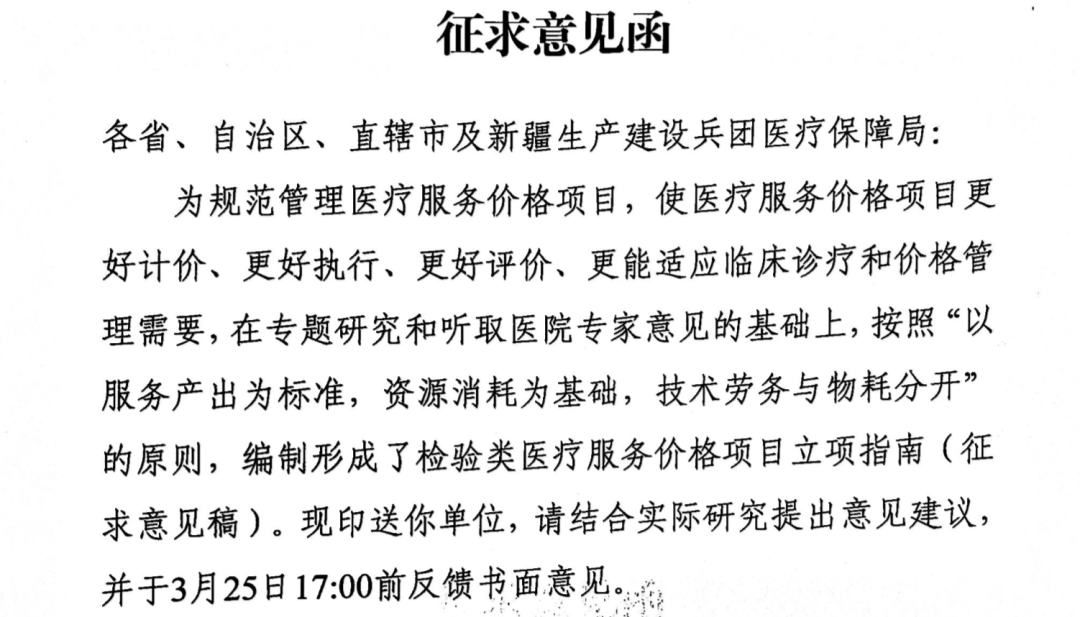 国家医保局就“检验类医疗服务价格项目立项指南”开始征求意见。