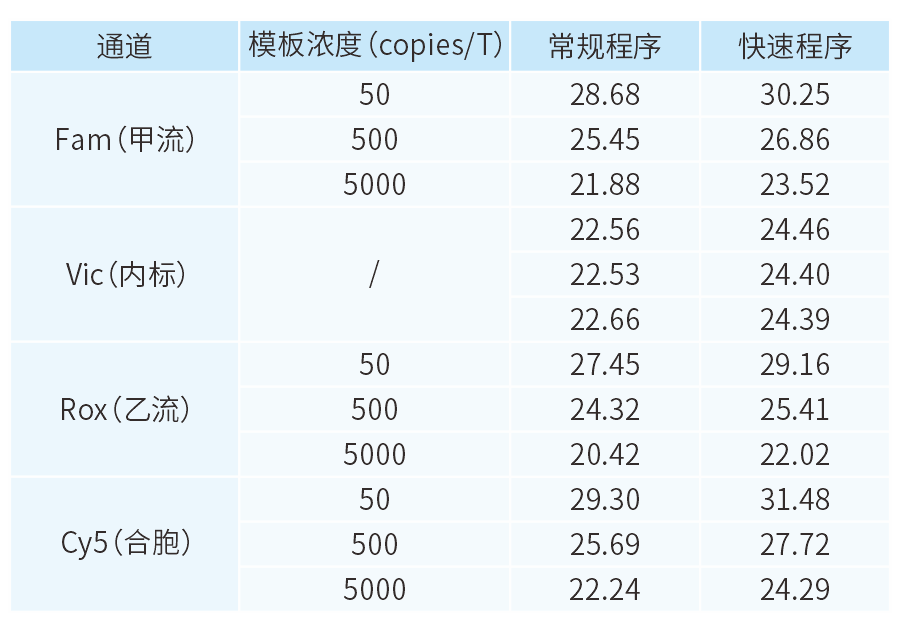 图3  RNA快速程序下扩增效率测试结果