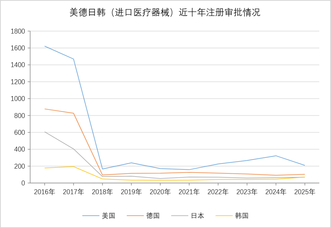 近十年来,进口医疗器械注册数量整体呈增长态势,但增速相对平缓,品类结构与市场格局随国内产业发展发生显著变化,国产替代趋势在部分领域逐步显现。