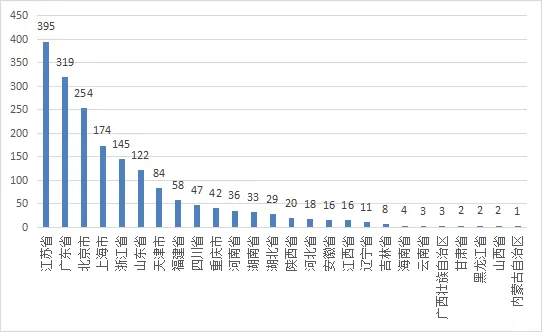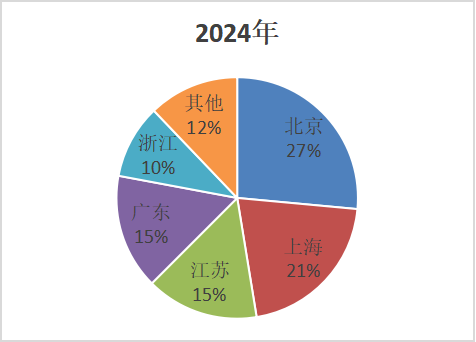 其中,江苏、广东、北京、上海、浙江是境内第三类医疗器械首次注册数量排前五名的省份,占2024年境内第三类医疗器械首次注册数量的68%,与2023年相比基本持平。