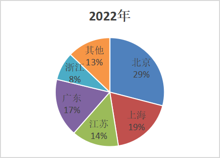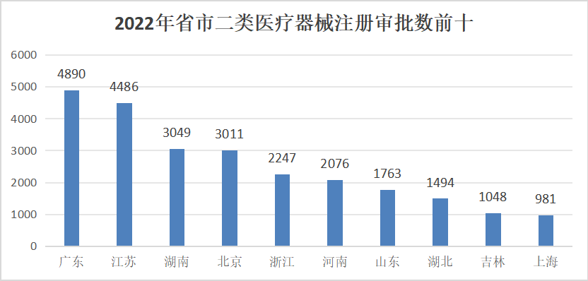 其中,江苏、广东、北京、上海、浙江是境内第三类医疗器械首次注册数量排前五名的省份,占2022年境内第三类医疗器械首次注册数量的69.7%,与2021年相比增加1.8%。