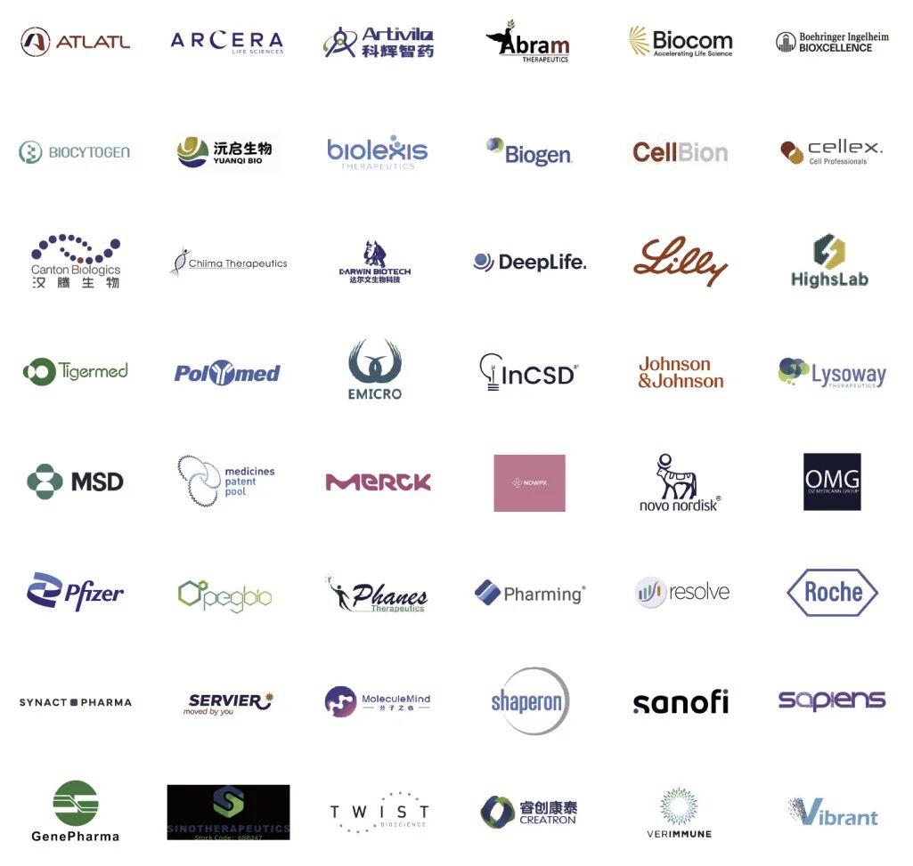 • 探索展区:与顶尖企业深度交流,包括:BioDlink, Boehringer Ingelheim, CHIA TAI TIANQING, Fangda Partners, Johnson & Johnson, Merck, Novotech, SinoTherapeutics, SS&C Intralinks, WuXi AppTec, Tigermed, and Tianjin
