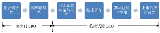 CRO简介及临床试验CRO优势 药物临床试验合同研究组织简称CRO,可分为临床前CRO和临床试验CRO两个领域,美国上市的药明康德(WX)和尚华医药(SHP)属于前者,而泰格医药属于后者。