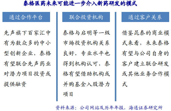 泰格拓展业务模式及竞争对手 2015年1月22日,泰格医药宣布拟定增5亿元用于收购北医仁智100%股权和补充流动资金,并计划将募集资金用于智慧医疗生态圈的建设和新药投资。北医仁智立足于临床试验CRO,同时更专注于学术性研究组织(ARO,Academic Research Organization),是国内目前在心血管领域领先的ARO公司;致力于盘活资源,探索新药投资、智慧医疗、学术营销等方向。 泰格医药的本土竞争对手有: 1) 北京凯维斯医药咨询有限公司成立于1997 年,主要为国内外客户提供药品Ⅰ期至Ⅳ期临床研究的方案设计、组织实施数据管理与统分析2011年被爱尔兰康临床研究( ICON)收购。2011年公司约有员工100多人。 2) 润东医药研发(上海)有限公司,是由日本 Cronov株式会社和润东医药研究开发有限公司合资组建的公司。 3) VPS万全阳光临床研究服务集团。目前共有人数100多人,完成各种研究项目100余项,目前在研40多个项目同时在国内外开展。 4) 广州博济国家新药临床研究中心,1998年成立,原隶属于中山医科大学,目前共有员工136名。共代理了国内外知名企业200多个新药的临床研究工作,目前在研项目五十多个。 5) 依格斯(北京)医疗科技有限公司:成立于 1999年,总部位于北京2009 年10 月被PPD 公司收购,现已成为PPD公司全球网络的一部分。员工人数约为200人。 下一步计划:或与先声药业展开合作