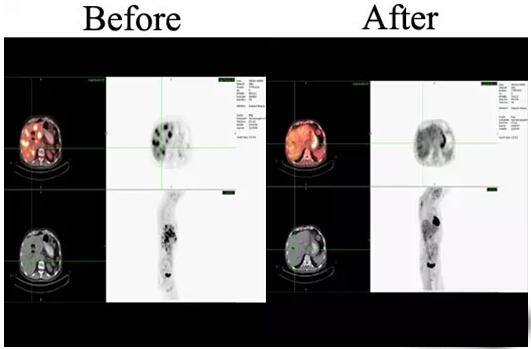 治疗前与治疗后对比 这近乎奇迹的效果,令史密斯先生及其家人们激动不已,虽然不知道自己究竟能活多久,但显然已经摆脱了4周的死亡预言。史密斯先生感到从未有过的信心,他认真地配合后续的治疗,也努力进行康复锻炼,在疗程结束的半年内,体重增加了25磅,生活质量也明显得到提升。史密斯先生很庆幸自己遇到了Dr Javadi,为他延长了生命周期,也许在这多出的时间里,就会有新的药物,新的方法被研发出来,能够更好地治疗胰腺癌了。 Dr Javadi接收的患者中,有一大部分都是像史密斯这样,已经被知名癌症中心,例如MDAnderson(安德森癌症中心),甚至Cedars-Sina(西达-赛奈医疗中心)都放弃治疗的四期(晚期)癌症患者(2014年他接受了25个这样的个例),在采用了“精准医学”的治疗方式仅三个月之后,所有患者的生存时间都比原来预期的加长了,大部分患者的癌细胞都消失了40%到60%,个别患者的癌细胞消失率更达90%。 作为走在“精准医学”应用前沿的肿瘤专科医生,DrJavadi是首批将免疫治疗、化疗以及靶向治疗综合运用的肿瘤专家。他为病患设计和运用的肿瘤订制诊疗方案得到了100%的回馈,部分诊疗方案被许多知名医学研究中所收录,并用于临床试验。