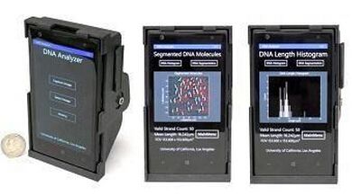 加州大学洛杉矶分校(UCLA)研究人员们最近开发出一种新的手机附件设备,能将任何智能手机变成一款DNA扫描荧光显微镜。这项创新可望对于医疗诊断带来深远影响,并再次展现如何有效利用智能手机来降低医疗成本,以及为开发中国家带来先进的医疗诊断技术。 这款智能手机的附件包括一个外部透镜、薄膜干涉滤光器、可微调的微型楔形榫头支架,以及雷射二极管,全部封装在一个以3D打印的小型方盒中,并整合成一款手持式荧光显微镜。 “DNA单分子在拉长时的宽度约2nm,”UCLA霍华德.休斯医学院(HHMI)教授Aydogan Ozcan表示,“以透视来看,它使DNA较人的发丝还细约50,000倍。目前,为单个DNA分子进行成像需要昂贵又庞大的光学显微镜工具,使其几乎仅限于先进的实验室设置才能进行。相形之下,这款适用于个人手机的附件设备显然就没那么昂贵了。” 虽然其他“智能手机变身显微镜”的设备也能够成像出较大规模的对象,例如细胞;但是,Ozcan的研究团队最新开发出的这款智能手机光学附件,则是首款可成像DNA单分子纤薄链以及调整其大小的设备。 该设备主要用于远程的实验室设置,以诊断不同类型的癌症与神经系统疾病,例如阿尔兹海默症(Alzheimer),以及侦测传染病的抗药性。为了利用手机上的相机,首先必须以荧光标记隔绝以及标示所需的DNA。Ozcan表示,如今,这种实验室程序已经能在偏远地区以及资源有限的环境下进行了。 为了扫描DNA,研究团队开发出可执行在同一支智能手机上的运算接口,以及一款Windows智能应用程序。扫描后的信息可被传送至远程Ozcan实验室中的服务器,然后测量DNA分子长度。在联机可靠可情况下,完整的数据处理过程只需要10秒钟的时间。