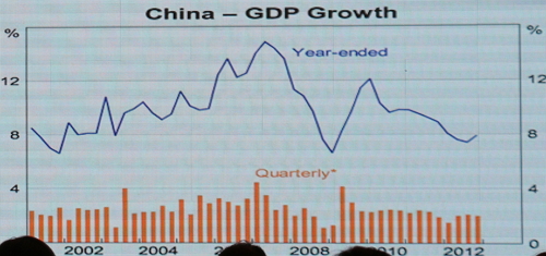 首先,他从宏观上分析了当前国际形势对各国GDP的影响,近几年来发达经济体经济运行分化加剧,发展中经济体增长放缓,世界经济复苏依旧艰难曲折。中国的GDP增速在2007年到达最高点后也在震荡中逐渐放缓。
