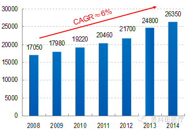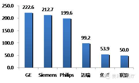 一、世界医疗概况及中国市场所占比重 世界医疗器械增长趋势(单位:亿元人民币) 世界医疗器械区域市场分布(2014年) 二、GE、飞利浦、西门子总收入及医疗占比(2014年,单位:亿元人民币) ![]() ![]() ![]() ![]() ![]() 可以看到,GPS的医疗业务收入都只占整个集团业务收入的不到一半;集团总收入和医疗业务的收入,都是GE最高,西门子次之。而有评论说:“西门子可以没有医疗,但飞利浦不可以没有医疗!”(来自网络) 三、UMY VS GPS : 收入差距(2014年,单位:亿元人民币) ![]() 上图中GPS的数值仅为医疗业务的收入;鱼跃含万东、上医械业务收入。可见GPS与UMY收入的差异巨大。 四、UMY VS GPS : 研发投入差距(2014年,单位:亿元人民币) ![]() 上图中GPS的数值仅为医疗业务的研发投入;鱼跃含万东、上医械业务的研发投入;联影的数据不详。 五、UMY VS GPS : 专利数据差距(2014年,单位:个) ![]() GPS的数据为 2014年整个集团的专利数;联影数据不详 六、UMY VSGPS : 人均效益差距(2014年,单位:万元人民币) ![]() 上图中GPS的数值仅为医疗业务的人均收益;鱼跃含万东、上医械业务的人均收益。 七、UMY VS GPS : 市值差距(2014年,单位:亿元人民币) ![]() 备注:联影数据为业内人士估值。 八、UMY VSGPS : 差距小结 1、理想很丰满,现实很骨感; 2、革命尚未成功,同志仍需努力; 3、路漫漫其修远兮,吾将上下而求索! |