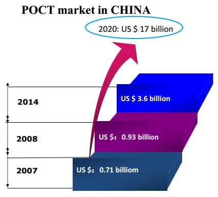 胡晓芳博士表示,一般情况下大家都认为在普及新的诊断技术时“加强对临床医生的培训”是难点;而事实上通过调研发现:临床医生对创新知识的接受能力超乎我们的想象,尤其是一些顶尖的专家非常乐意接受新知识、拥抱新技术,并进行个性化指导用药。 接下来几年,我们一定要加速基因技术和医学大数据的融合过程,个体化用药过程的普及一定是呈金字塔型的自上而下的过程。在政策制定方面,一定要做好顶层设计,只有将标准设立好后,才有可能向基层医院辐射。 未来5年,IVD产业的预期增长率将保持在15%左右,是世界上增长最快的市场,发展趋势非常好,其中基因检测市场的增速将比临床化学诊断和免疫诊断要快。中国在2014年的POCT市场已达36亿美元,预计在2020年达到170亿美元。